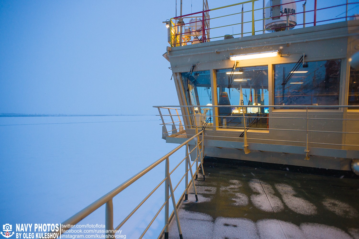 — Основная задача - ледокольное обеспечение движения судов на вход и на выход из порта. Проводить мы можем как методом лидирования, так и на буксире. Если совсем сложная ситуация, то берем на буксир, потому что зачастую балластные суда не могут идти самостоятельно, несмотря на достаточно широкий канал, либо в ситуации сильного сжатия.