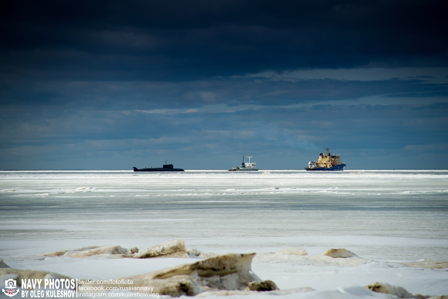 9. Ледоколы ФГУП «Росморпорт» «Новороссийск» и «Капитан Чадаев» во время проводки атомной подводной лодки «Орел».