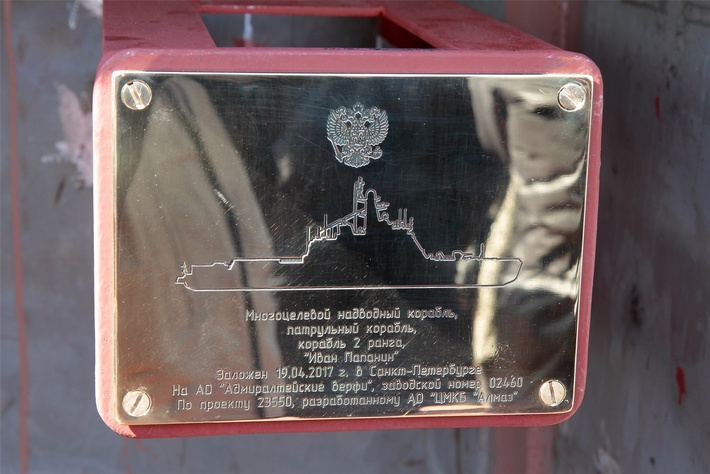 Сегодня в Санкт-Петербурге на ОАО «Адмиралтейские верфи» заложен многофункциональный патрульный корабль ледокольного типа «Иван Папанин» проекта 23550 для ВМФ России.