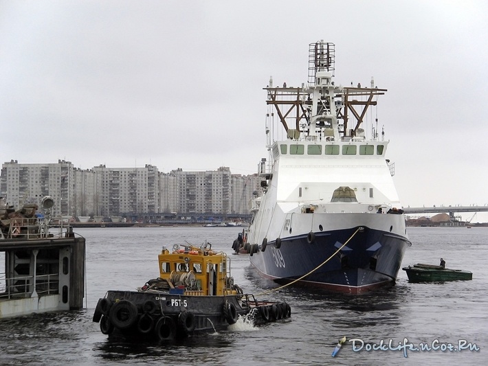 Сегодня в Санкт-Петербурге на ОАО «Судостроительная фирма «Алмаз» спущен на воду пограничный сторожевой корабль «Бдительный» — 11-й ПСКР проекта 22460 «Охотник».