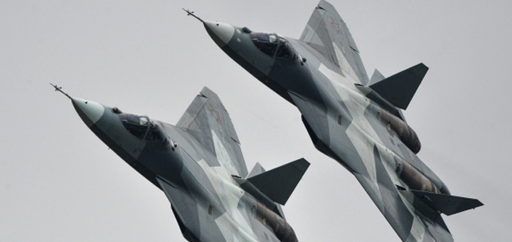 Т-50 — российский многоцелевой истребитель пятого поколения, разработки и производства компании «Сухой». Согласно открытым данным, в конструкции самолета применены композиционные материалы на основе углепластика, что сильно снижает его радиолокационную заметность. Т-50 вооружен сдвоенной 30-мм пушкой, в боекомплект которой входит 100 снарядов. Основное вооружение — две ракеты ближнего боя и восемь среднего радиуса действия, располагаются в двух внутренних отсеках. Кроме того, 14 ракет могут быть размещены на внешних точках подвески.