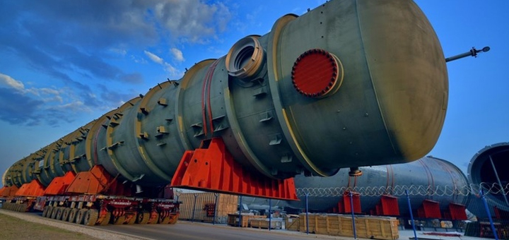 | На Омском НПЗ началась транспортировка крупногабаритного оборудования на площадку строительства комплекса глубокой переработки нефти (КГПН). <…> Для доставки с площадки временного хранения к месту строительства технологического объекта первых единиц негабаритного груза — двух колонн КГПН высотой 45 и 64 метра — был задействован многоосный самодвижущийся модульный транспортер с дистанционным управлением. |