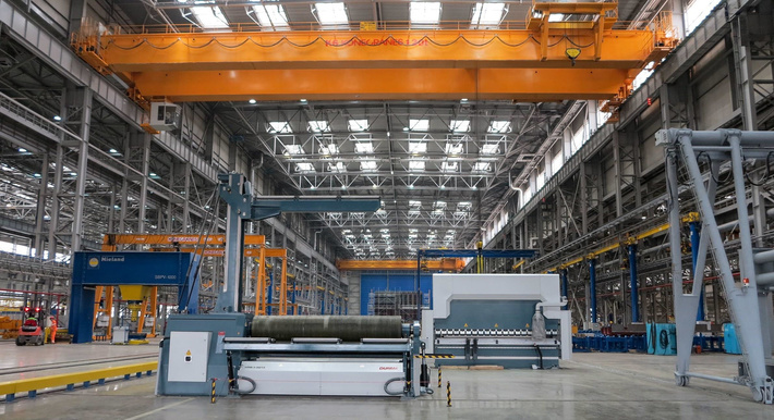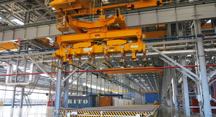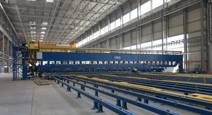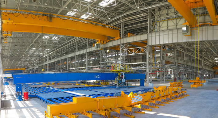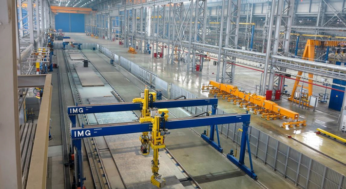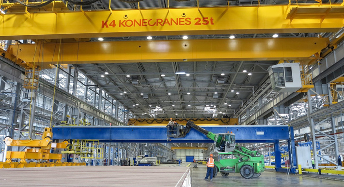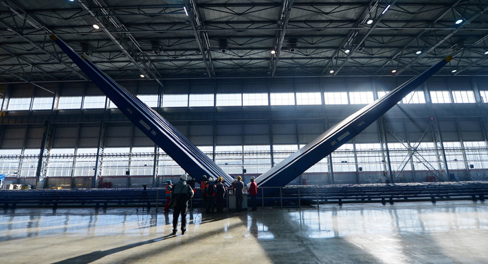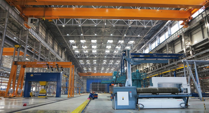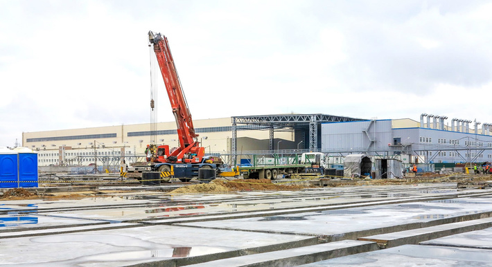Грузоподъемность главного крана составляет 1200 тонн. Это самый большой кран в России. Он будет построен в сотрудничестве с китайскими партнерами. Пролет крана — 230 метров. И собирать его будут прямо на территории завода.