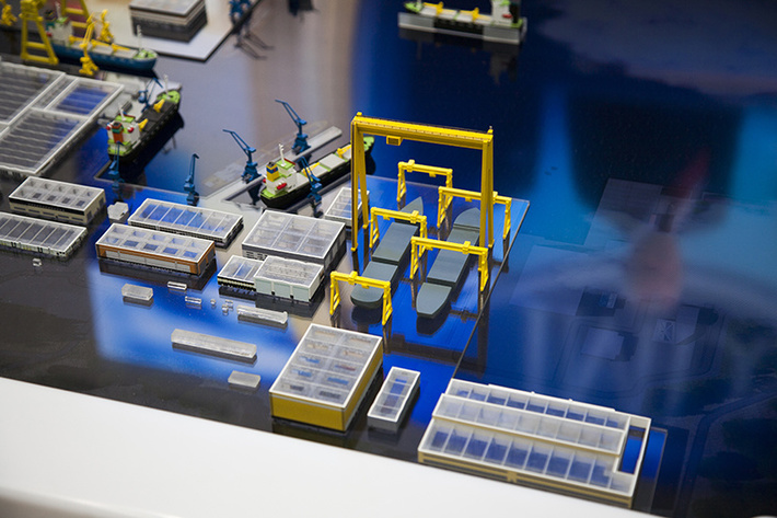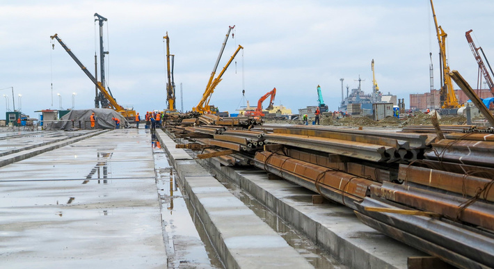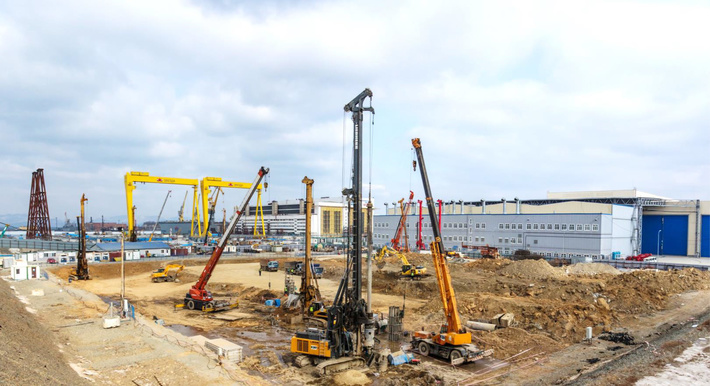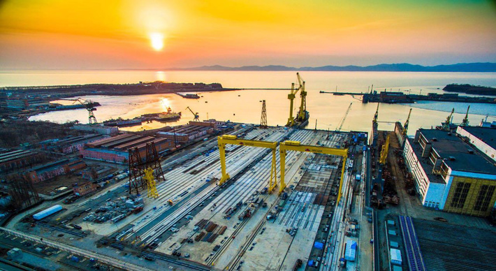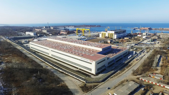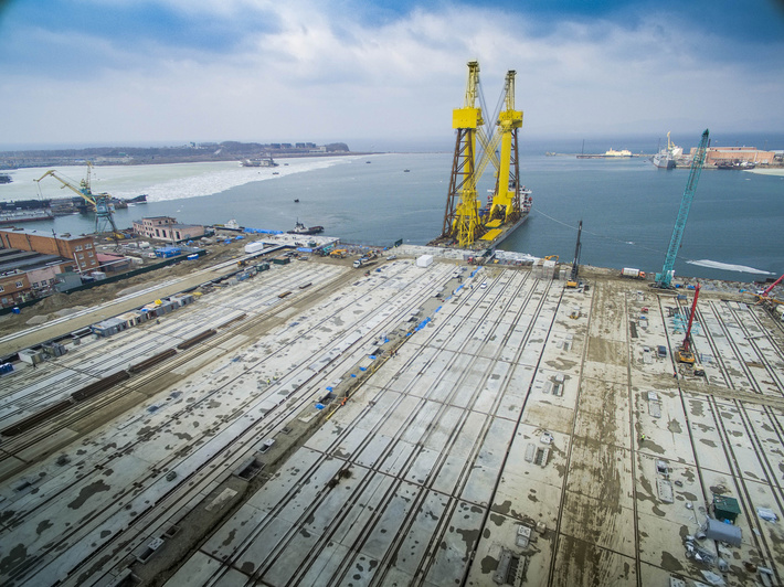 Специалисты предприятия отмечают, что достроечный тяжелый стапель, расположенный на территории комплекса, станет самым длинным в России — 400 метров.