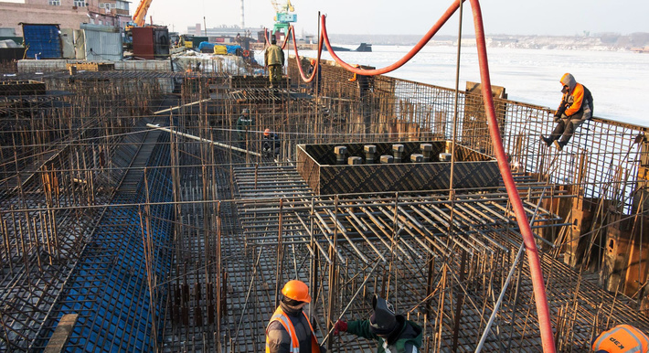 Подготовка к бетонированию передаточного причала тяжелого стапеля