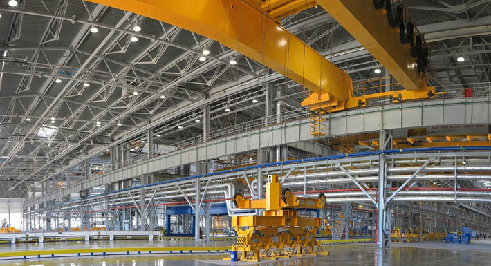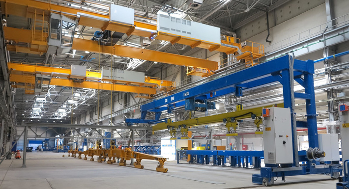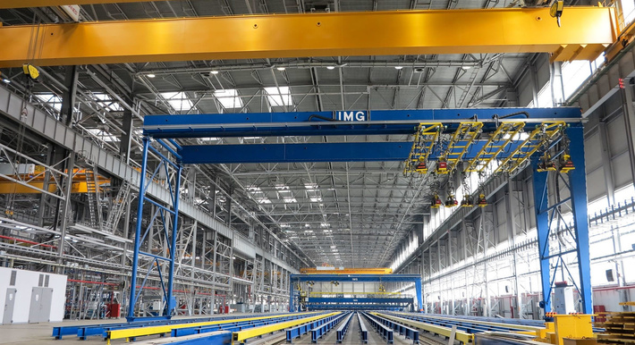 Металлообрабатывающая линия с крановым оборудованием в блоке корпусных производств