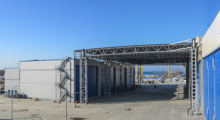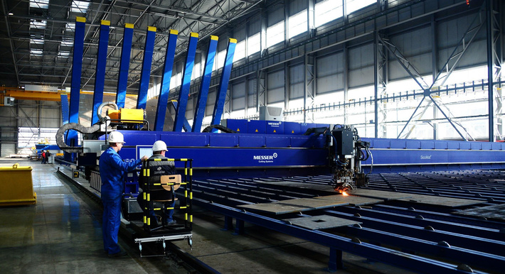 возведение цеха горячего цинкования; строительство трубообрабатывающего цеха; возведение цеха сборки блоков; строительство достроечной и грузовой набережных;