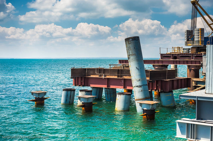 Неподалёку от моста тянут газопровод в Крым, он будет проходить по дну Черного моря: