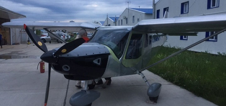 Самолет показал очень хорошие характеристики. Крейсерская скорость на 5000 оборотов двигателя 175 км.ч! Без преувеличений, как это обычно делают производители! Двигатель Rotax 912 100 л.с. Посадочная скорость 100-90 км.ч, касание 70 км.ч.