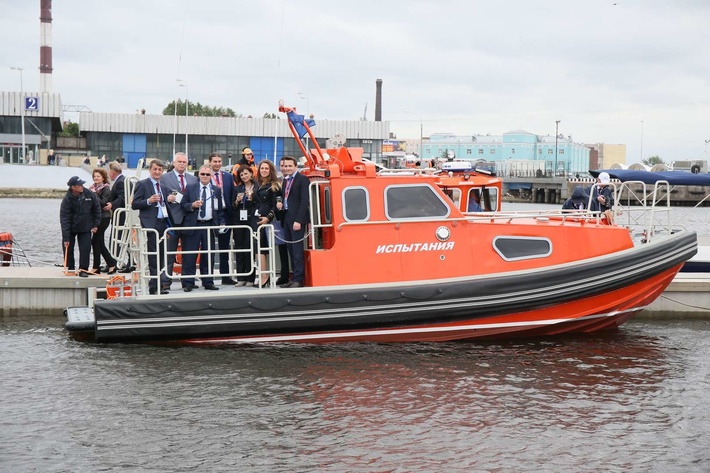 Крестной мамой этого катера стала сотрудница компании Елена Ярутина, которая по традиции разбила бутылку с шампанским о борт судна.