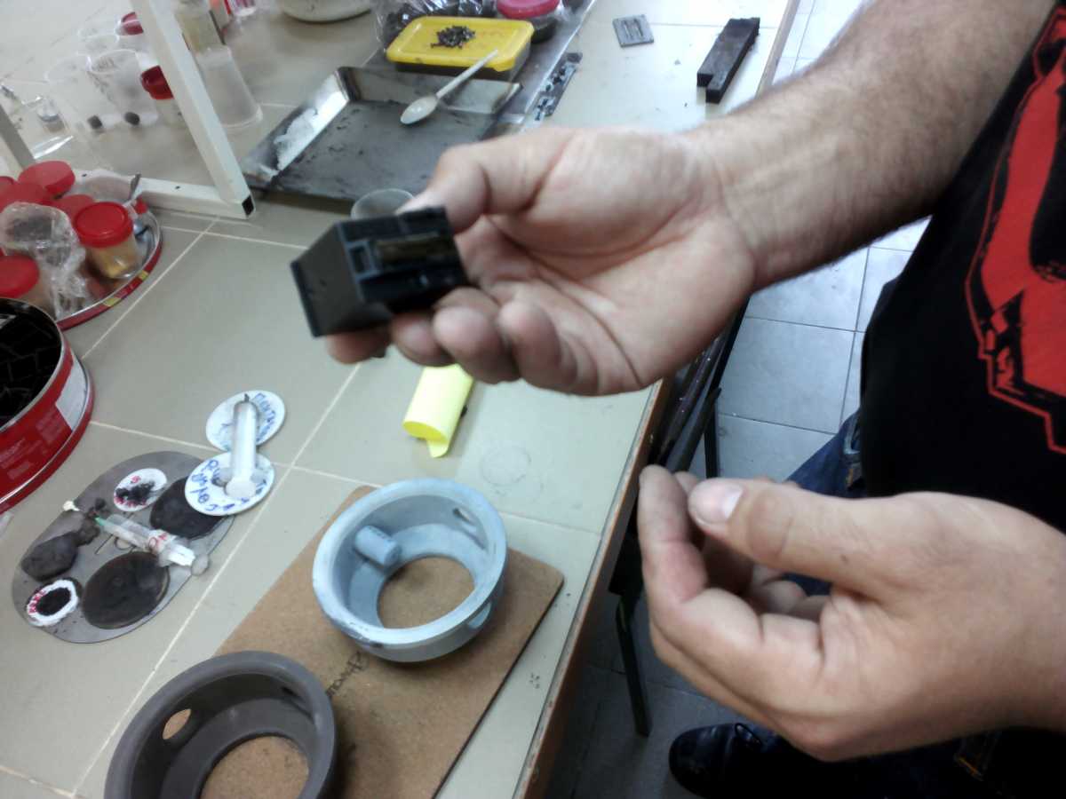 — Порошок кремния, а также дисперсная армирующая фаза, обычно представляющая собой шлифзерно карбида кремния или оксида алюминия, смешивается с расплавленным парафином. Эта дисперсия при 70 0С отливается под давлением не более 5 атмосфер в заранее изготовленную металлическую форму, – рассказывает старший преподаватель, инженер кафедры материаловедения Сергей Ситников. – После отливки парафин затвердевает и его содержание в детали составляет 12-25%. В результате двухстадийной термообработки – сначала до 180 0С в порошке-адсорбенте, а затем до 500 0С на воздухе – технологическую связку в виде парафина удаляют. Отформованный «черепок» отправляется в герметизированную печь, где в результате химического соединения кремния с азотом и получается деталь из нитрида кремния.