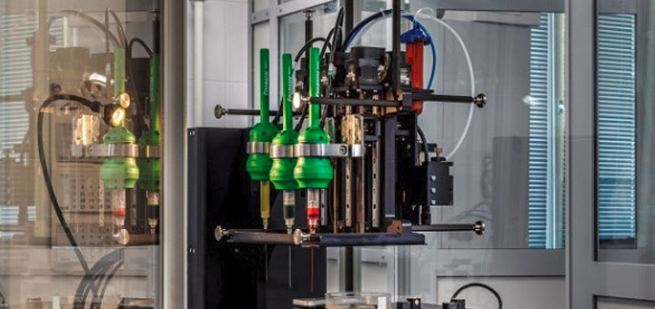 Новый аппарат разрабатывается специально для проведения опытов на борту Международной космической станции. В отличие от первого биопринтера под названием «FABION» (на иллюстрации выше), использующего принцип шприцевой экструзии, новинка манипулирует клеточной массой посредством управляемых магнитных полей.