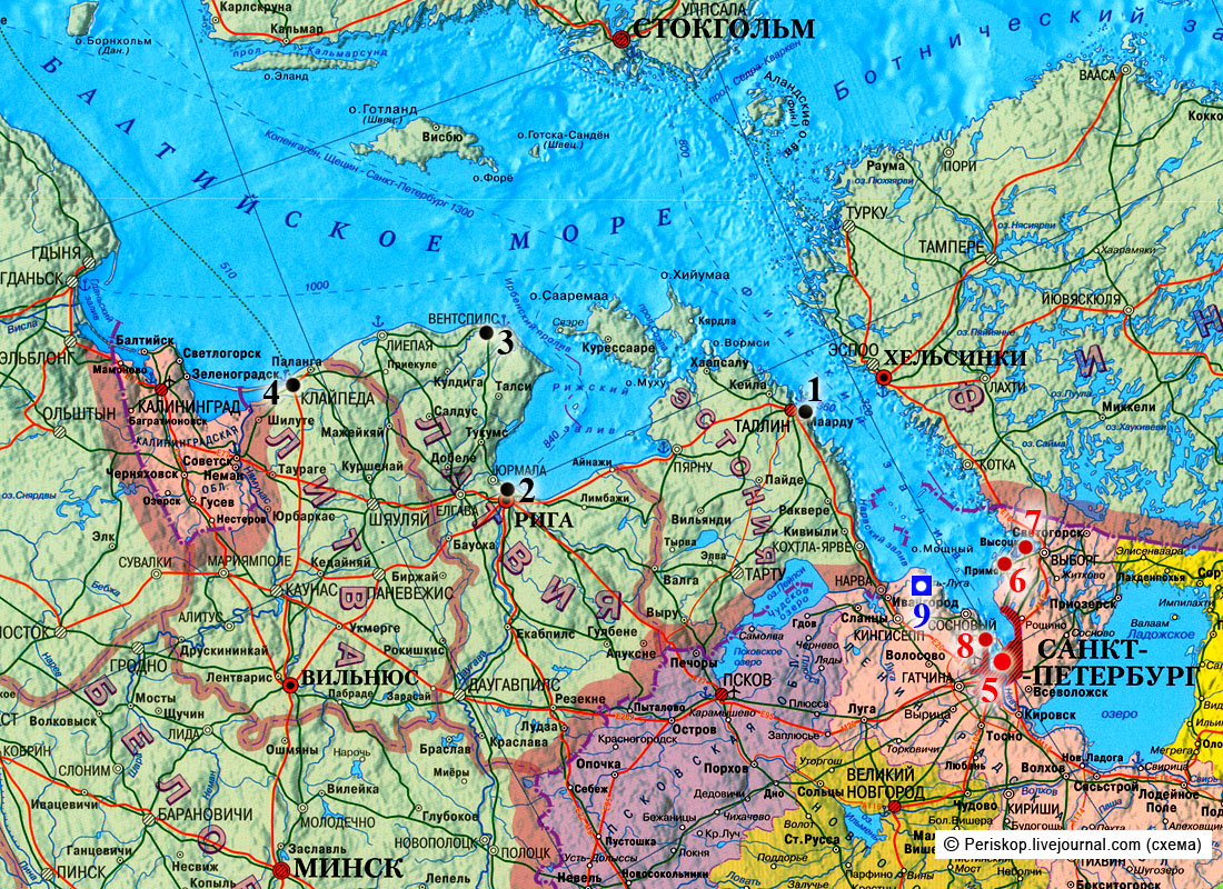 2. Вот тут очень наглядно видна картина геополитической катастрофы постсоветской России на Балтике к концу 90-х, после распада СССР и переформатирования карты мира.