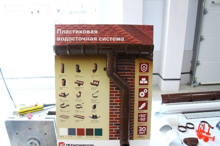 Продукция завода — это различные комплектующие для кровли — водосточные трубы, водоприёмные воронки, соединительные желоба, защитная решётка и прочее. Пластиковые водосточные системы ТехноНИКОЛЬ предназначены для эффективного отвода с кровли дождевой и талой воды. На рязанском предприятии установлены производственные линии от мировых лидеров отрасли — ENGEL (Австрия) и Theysohn (Германия). Важнейшая часть оборудования — пресс-формы изготовлены по индивидуальному заказу. Современное оборудование и применение высококачественного сырья отечественного и импортного производства обеспечат соответствующее высоким мировым стандартам качество продукции.