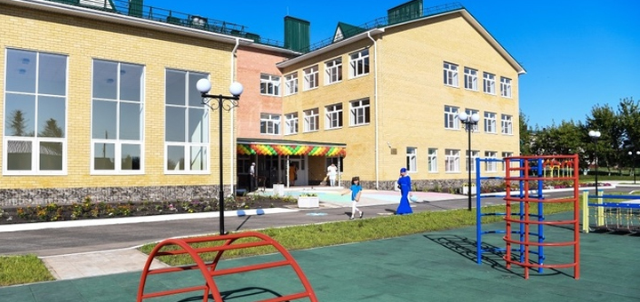 Далее почетные гости осмотрели помещения школы и детсада, пообщались с преподавателями и детьми.
