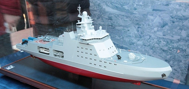 Макет патрульного корабля арктического класса проекта 23550 Иван Папанин. Фото: CC BY 4.0 / Минобороны РФ / Сropped image