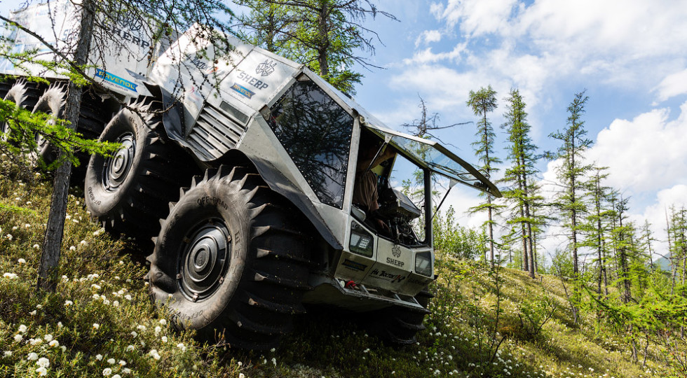 Российская трансконтинентальная экспедиция «На восток!» преодолела плато Путорана на вездеходах Шерп российского производства.
