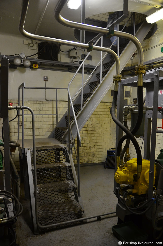 11. Там — машинное отделение: электродвигатели, приводящие в движение масляные насосы. Это самая нижняя технически часть.