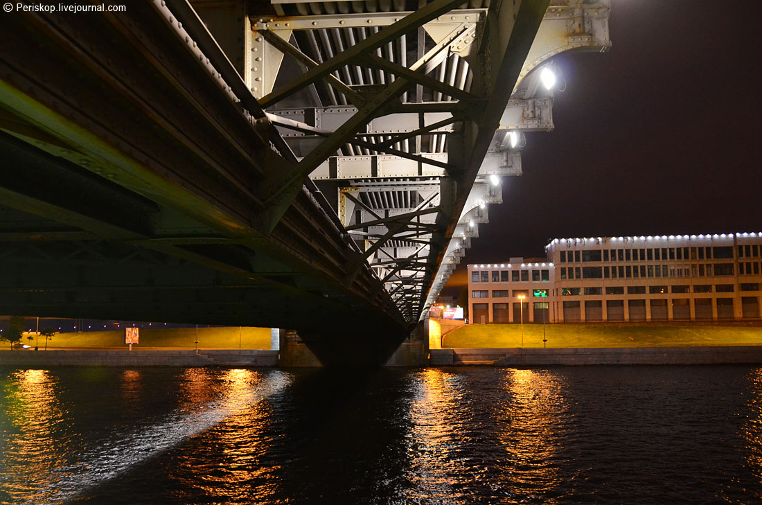 2. И вот, около часа ночи 9 июля я иду по этому мосту, на волнующую встречу с его недрами и внутренностями. Впереди маячит та самая башенка, которая радикально отличает мост от всех остальных и придает ему своеобразие. Их две — вторая просто не видна сейчас.