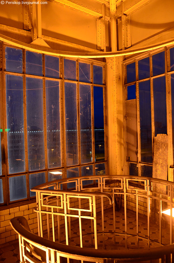 19. Вид на темный Питер через мутные стёкла башни. Увы, открытой галереи под разводным пролётом тут нет, конструкция по планировке совершенно иная.