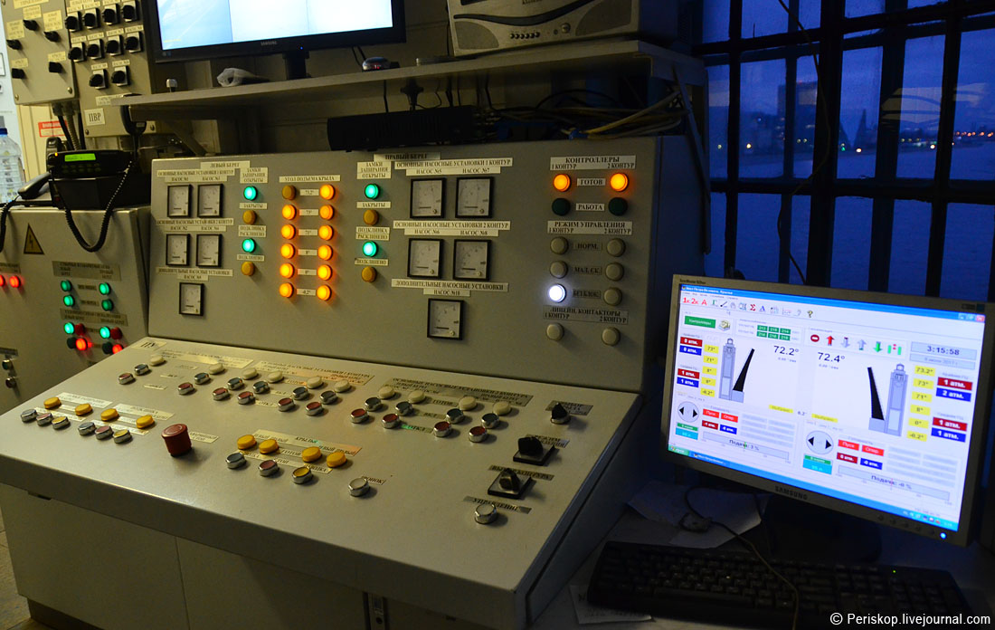 39. Спускаемся вниз, в центр управления. Скоро уже и наводка моста, заявка на проход судов почти исполнена.