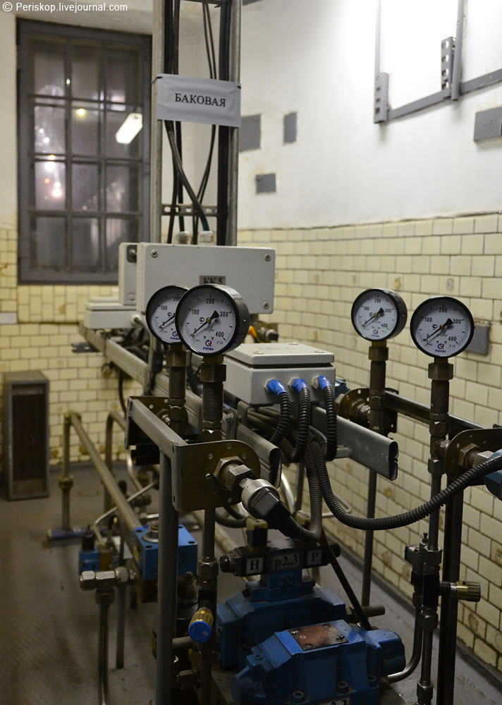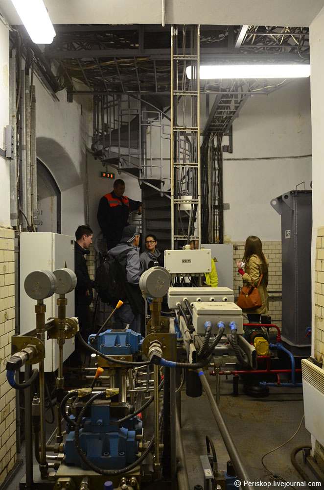 8. На уровне -1 расположено помещение с приборами контроля и масляными насосами, которые подают масло в цилиндры разводных механизмов моста.