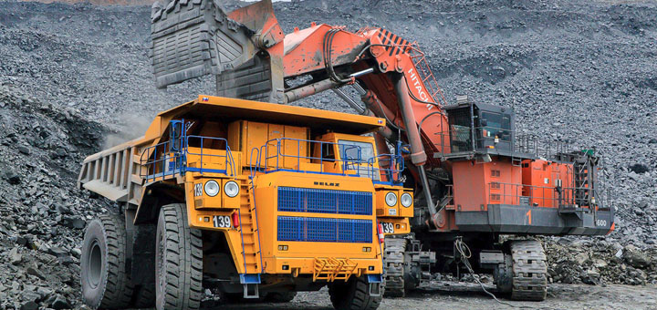 «Белаз» и «Caterpillar» чередуются. Импортный самосвал перевозит кстати всего 180 тонн.