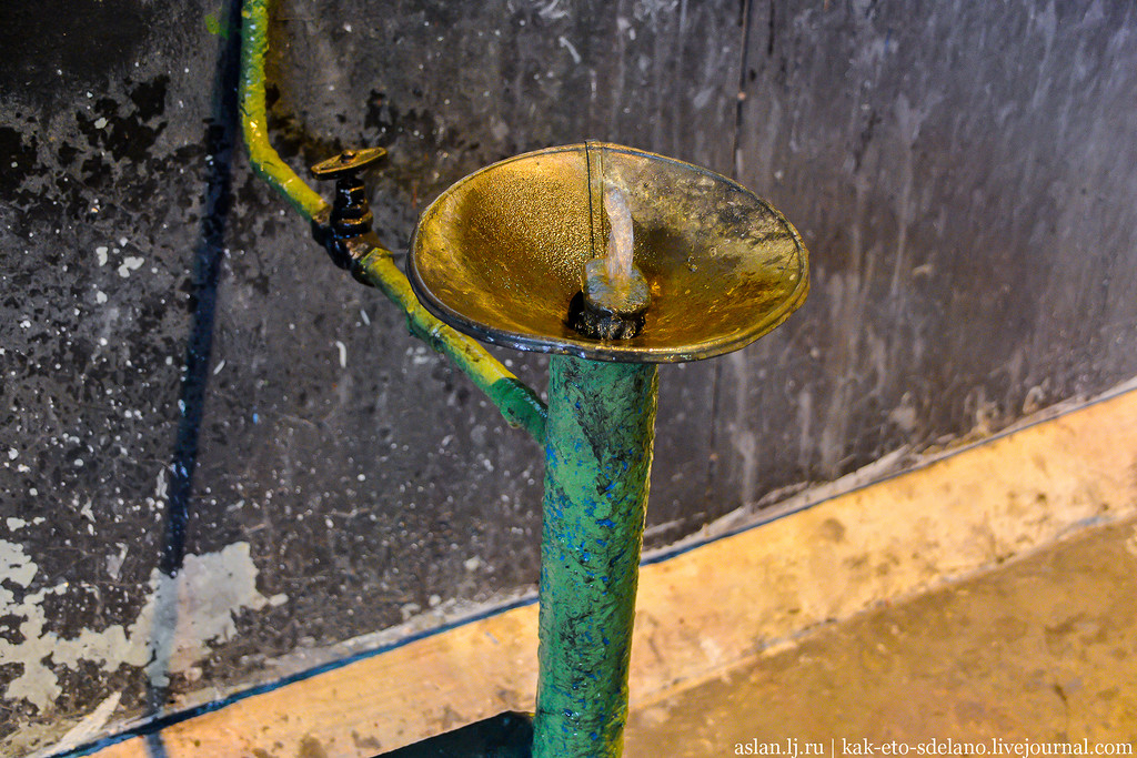 В цехах стоят такие поильники, все-таки тут жарко, а без воды никак.