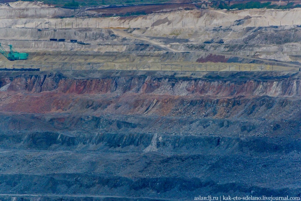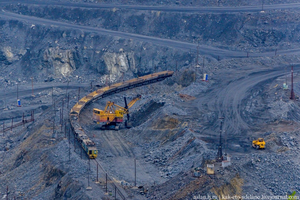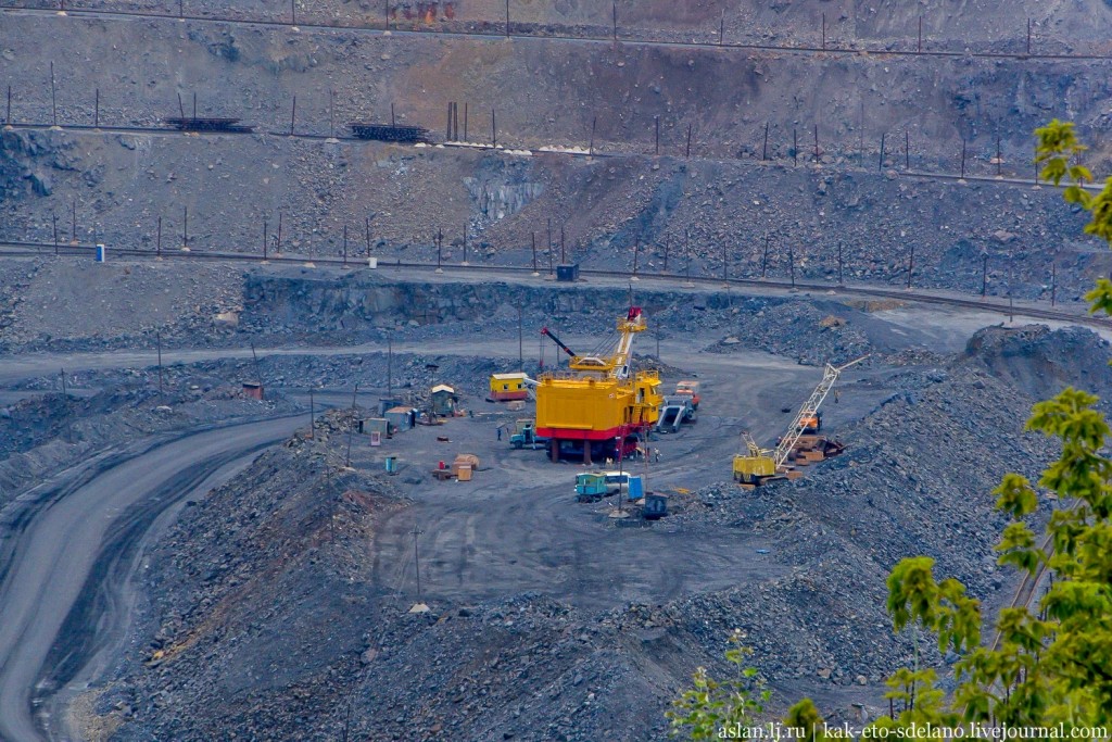 По этой железной дороге, которая связывает карьер с заводами, руду транспортируют на дальнейшую переработку. Об этом рассказ будет дальше.