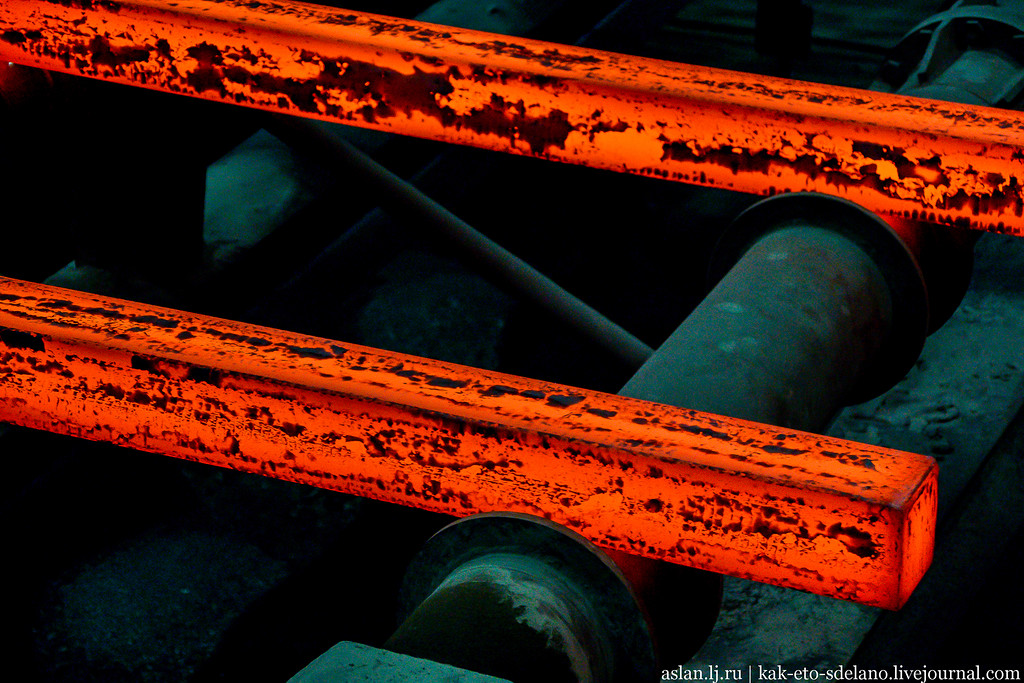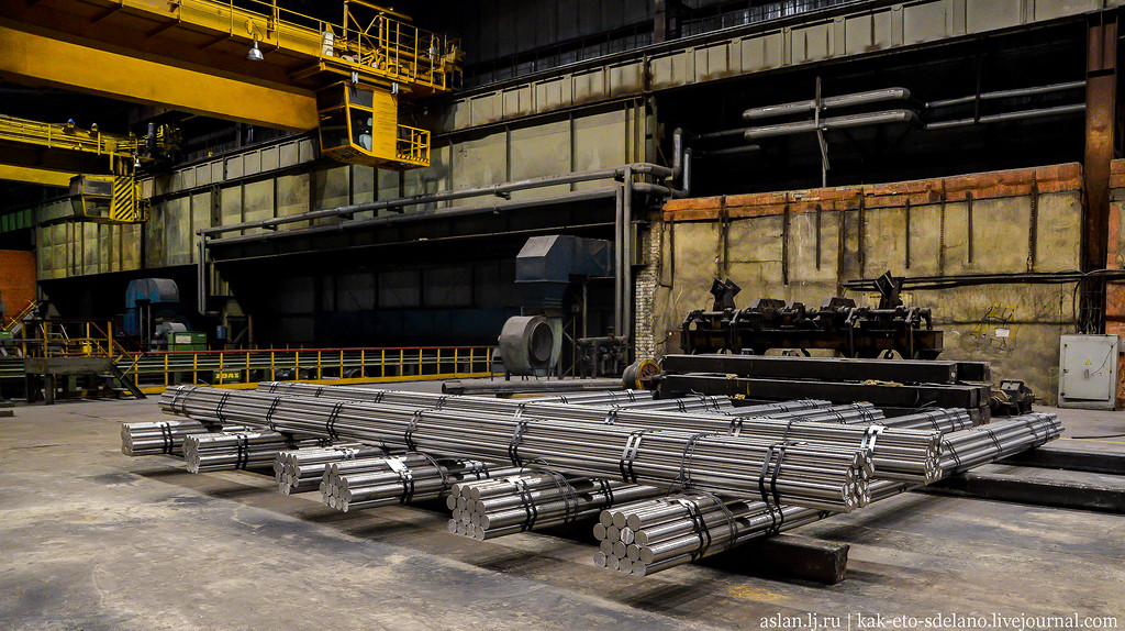 В следующем цеху горячие заготовки охлаждаются водой до нужной температуры.