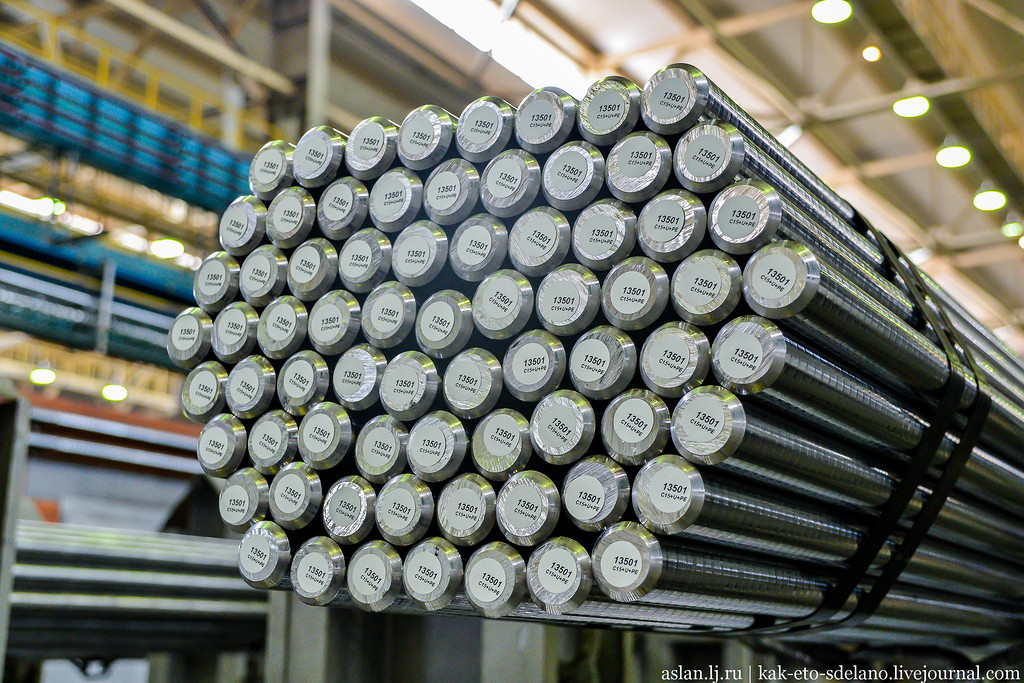 В соседнем цехе ОЭМК обтачивают и полируют стальные пруты разного диаметра, прошедшие прокат в предыдущих цехах. Кстати, этот комбинат — седьмое по величине предприятие в России по производству стали и стальной продукции.