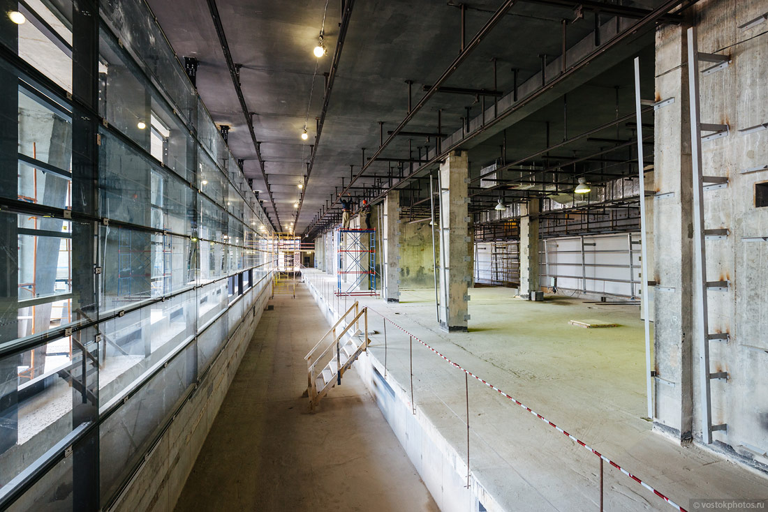 5. Вид на второй вестибюль. Черные конструкции в форме ХХХХХ — это будущий наземный переход через Мичуринский проспект.
