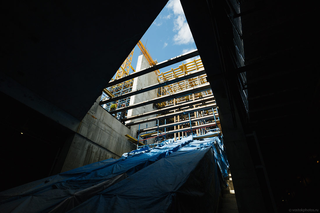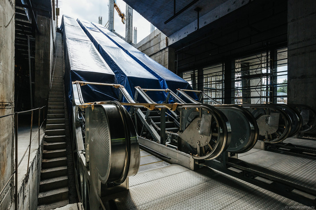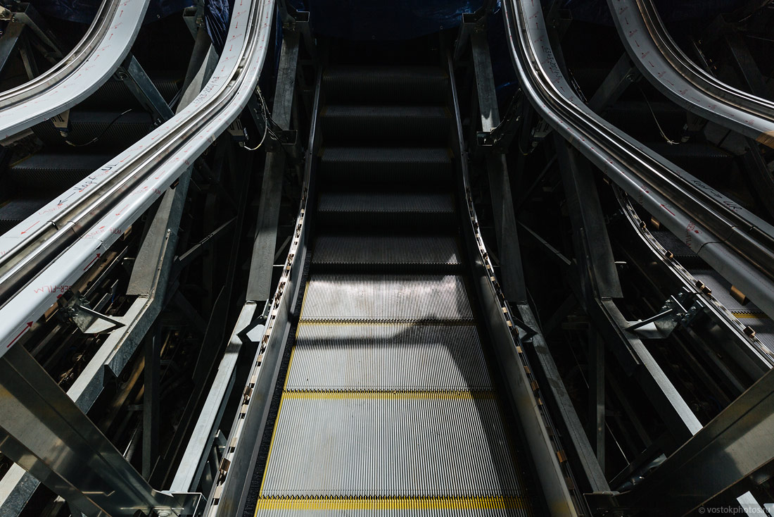 14. Пока не залили крышу верхнего уровня, уходящие в небо эскалаторы выглядят нереально.