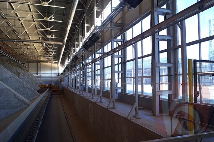 Площадь основного производственного цеха — 24 600 м². Склад готовой продукции располагается на площади 5 га. Он рассчитан на хранение полугодового запаса произведённого на заводе кирпича.