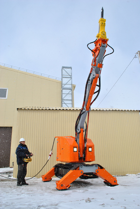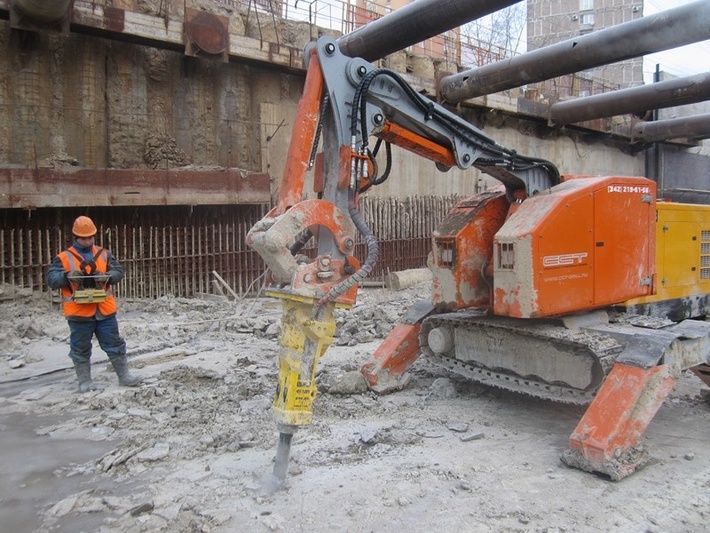 Подземное строительство Работы по проходке стволов шахт, демонтаж упорных стенок и пробивка отверстий в ТПК, разборка горных пород. Проходка коротких выработок. Проходка тоннелей метро и микротоннелей. Проходка штольни, штреков, квершлагов. Выработка сбоек между тоннелями. Доработка породы под тюбингами. Разработка забоя с помощью фрезы. Земляные работы ковшом, рытье траншей, выемка грунта, разравнивание грунта, дробление и просеивание грунта, засыпка и уплотнение траншей, вывоз земляных масс и сыпучих материалов. Укладка тюбингов специальным захватом. Благодаря дистанционному управлению всеми процессами можно управлять находясь на безопасном расстоянии от объекта работ. Оператор может легко передвигаться и выбирать наилучшую позицию, находясь в безопасной зоне. На оператора не воздействует вибрация.