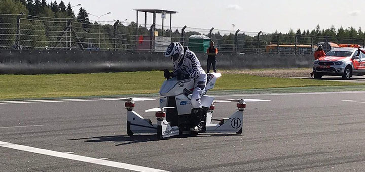 Пилот на HoverBike S3, который поднялся над землей на метр, пролетел около километра. «Полет дрона с пилотом — это достаточно значимое событие, которое позволяет судить об уровне развития техники, — прокомментировал первый тестовый запуск летающего мотоцикла его создатель Александр Атаманов, гендиректор компании HoverSurf.