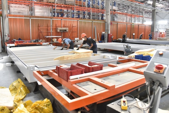 Цех по изготовлению модулей — так называют блоки для строительства. На новосибирском заводе — полный цикл производства, от обработки металла до сварки и сборки контейнеров. За смену специалистам удается изготовить до 12-ти блоков. Для сравнения: это один небольшой фельдшерско-акушерский пункт.