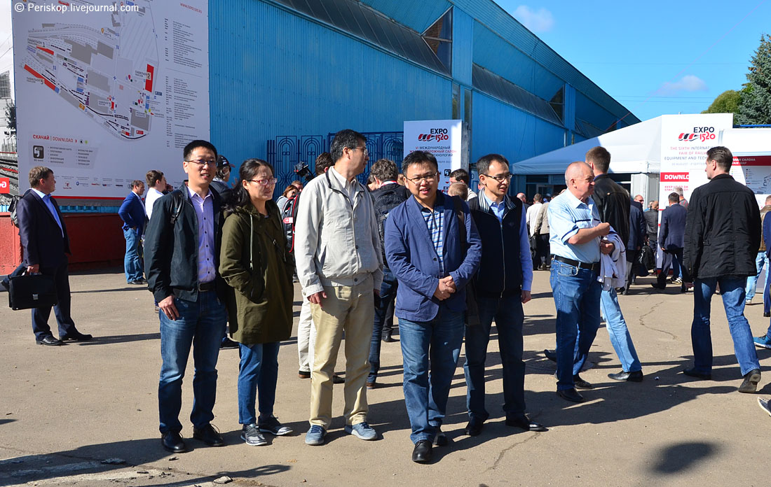 2. С Курского вокзала на салон между 9 и 10 утра шли две бесплатных «Ласточки» — я успел на первую. Народу очень много, но этот (второй) день был отдан отраслевым специалистам. Посетители планировались на третий день, а специальная детская программа — на четвертый. Когда пришёл ко входу, обратил внимание, что приехало смотреть технику и работать на салоне много китайцев. Они сейчас очень активны в работе по ж/д всего мира, и мы — не исключение.