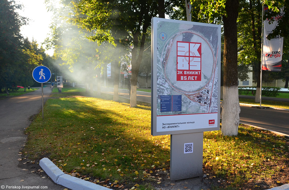 3. Прошёл контроль, и вот я на территории легендарного ВНИИЖТ. Впервые в жизни. Кстати, дым на фото — не просто дым, это паровозный. Специфика места: неподалёку и выше как раз стояли 7 или 8 паровозов в полной готовности, а ветер дул оттуда.