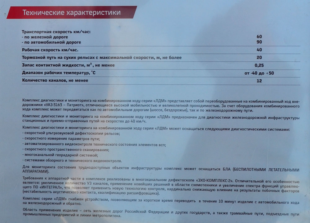 4. Первое, на чём я остановился в осмотре — это ж/д модификация банального УАЗ-Патриота. Легкая машина для диагностики путей.