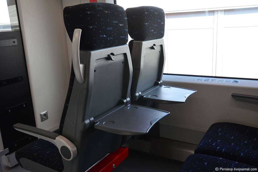 11. Сами сиденья мне показались более дубоватыми, чем немецкая модификация. Те были помягше: уральцы кажется несколько перестарались с антивандальностью. Зато — полноценные столики, прочные, на которые можно поставить даже ультрабук.