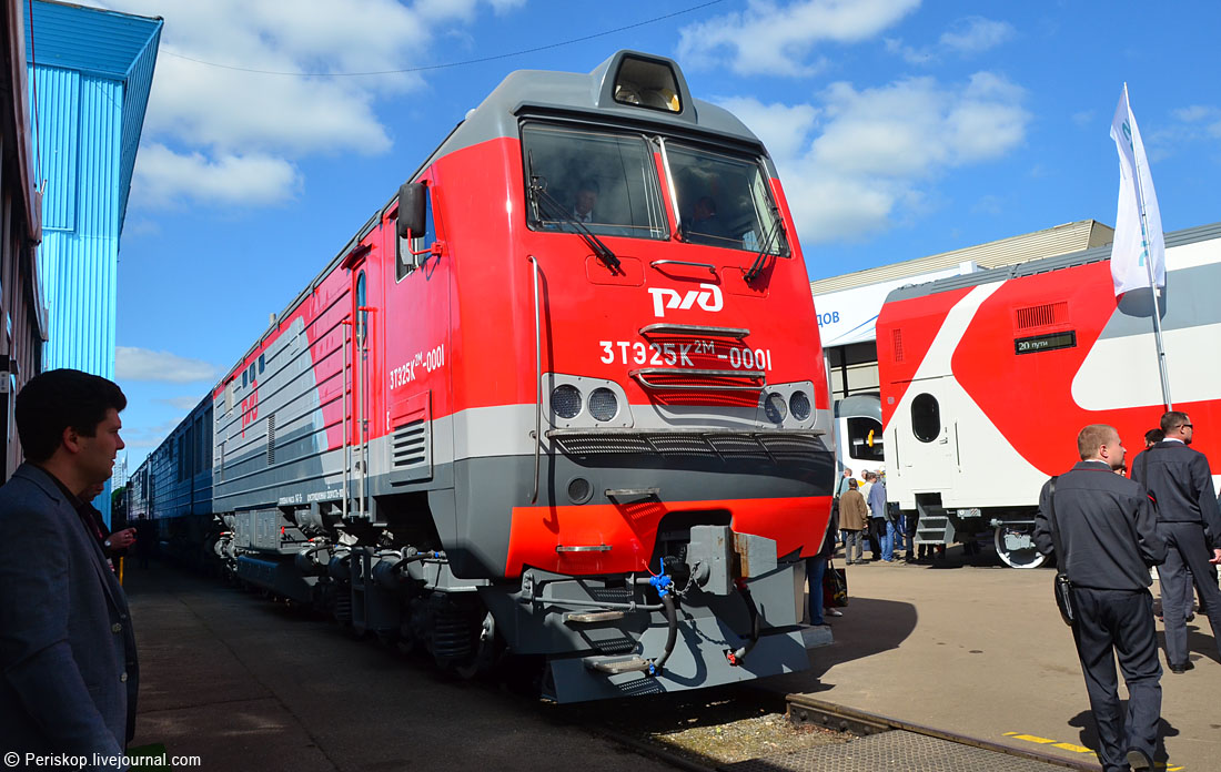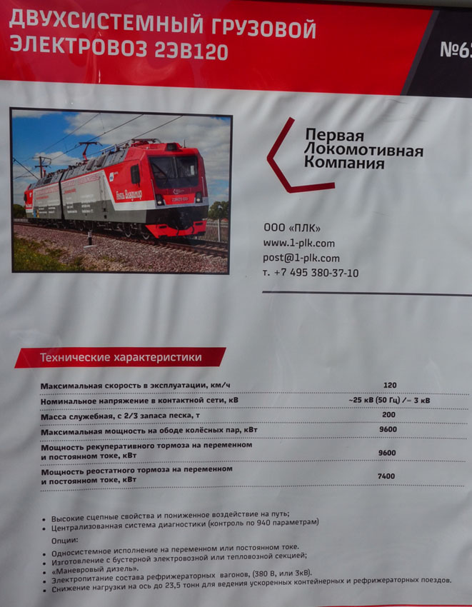 Представлено там очень многое — чтобы обойти всё и внимательно, требуется пара дней. Поэтому я не буду сильно растекаться мыслию по древу, а напишу свои впечатления только от части экспонатов, которые привлекли наибольшее внимание. Важная ремарка — там были представлены не только магистральные, но и техника для пригородных перевозок (новые электропоезда), и даже трамваи с метро. Так вот — прошу не долбать меня «пригородной» тематикой: о новых элках напишут многие авторы, а конкретно мне было интересно магистральное движение и техника для евразийского коридора и Транссиба. Поэтому многое из представленного там пропускаю. А то пост разрастётся до неподьёмных размеров.