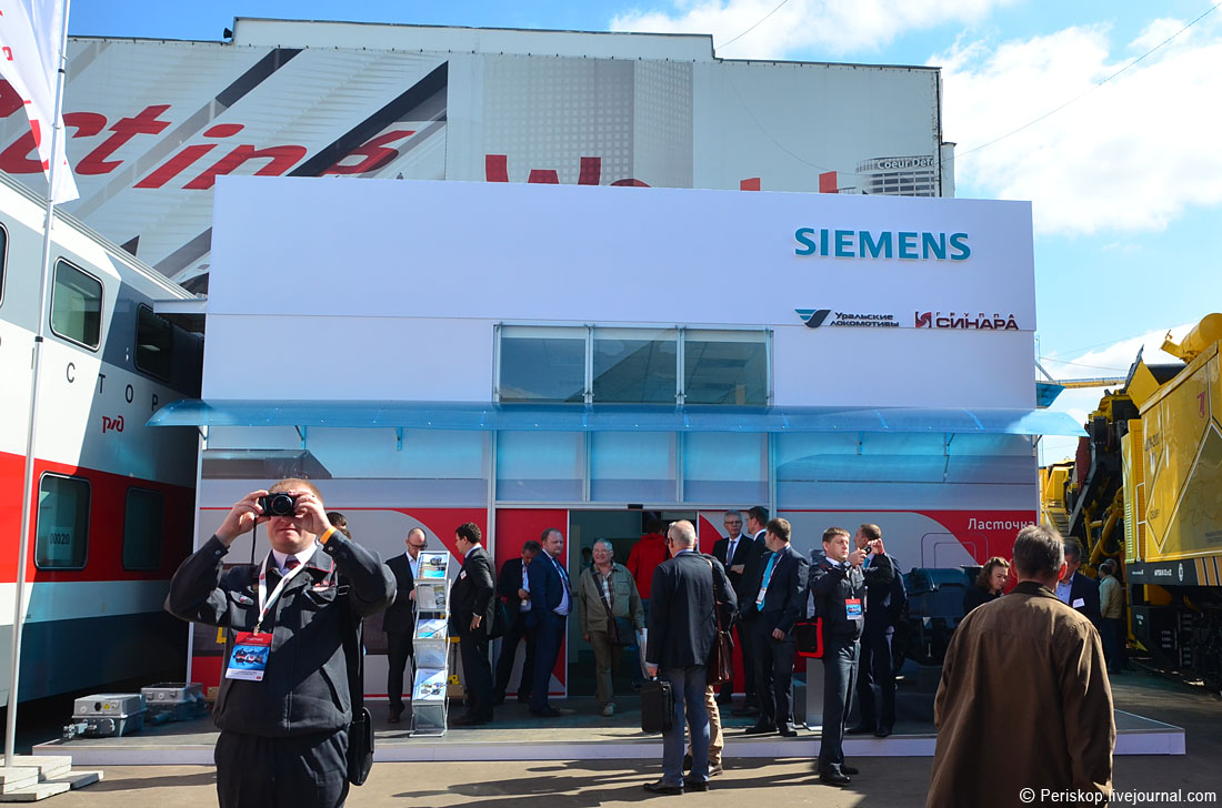 26. Западников на ЭКСПО было много: и «Сименс» и «Альстом» отгрохали здоровенные отдельные павильоны. Интересно, что «Сименс» в газовых турбинах «рыбу не заворачивает», а вот в ж/д проектах — ещё как «заворачивает» и борется за большой российский рынок.