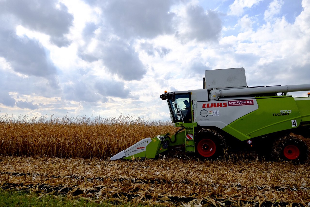 На полях хозяйства ООО «Малком-Агро» выстроились комбайны Тucano с жатками для уборки сои, кукурузы и подсолнечника, и трактора — от компактного Arion до мощного Xerion. Цена комбайна достигает 20 млн рублей в зависимости от модели.
