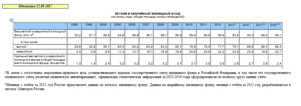 Видно, что до 2008 года ветхий фонд рос. Что является вполне логичным результатом развала в девяностые годы. При этом, просьба учитывать, что инфраструктура не строится за год или два. А переломить тенденцию еще сложнее. Поэтому положительный результат от руководства с начала двухтысячных проявился только в 2008 году. С 2008 года идет ТОЛЬКО уменьшение ветхого жилья.