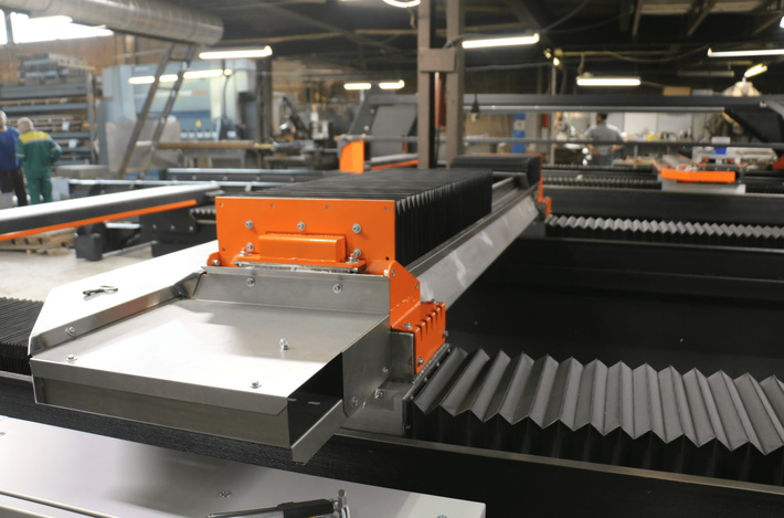 Портал станка, по которому будет перемещаться лазерная голова, также проходит этап фрезеровки и шлифуется по небольшой, не видной глазу, дуге, что в итоге позволяет получить его параллельное положение относительно стола раскроя с точностью до десятых долей миллиметра. Тщательные расчеты позволили оптимально понять естественный прогиб портала под тяжестью собственного веса и режущей головы.