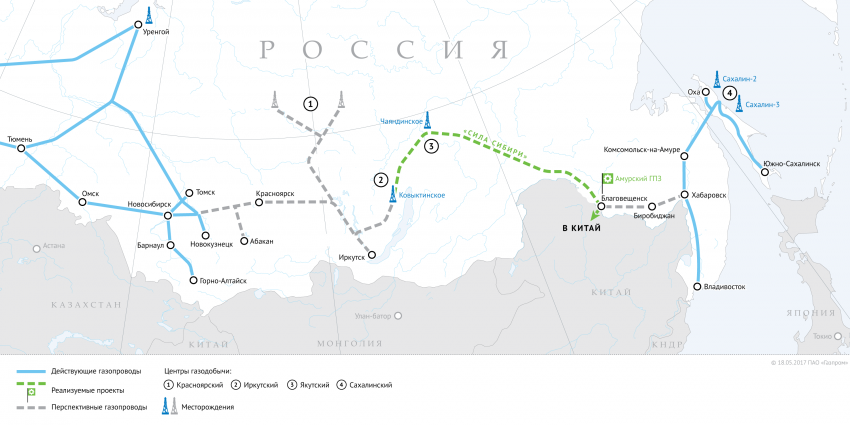 Газпром и CNPS подписали соглашение о дате начала поставок по «Силе Сибири» – этим днем должно стать 19 декабря 2019 года. Длительность контракта составляет 30 лет, то есть и сама магистраль, и АГПЗ, который ее «оседлает» – это всерьез и надолго. Но это – «выходное отверстие» трубопровода, тут понятно. Вы, уважаемые читатели, помните, откуда именно на входе возьмется триллион с лишним кубометров природного газа? Правильный ответ – из Сибири, но давайте-ка присмотримся повнимательнее.