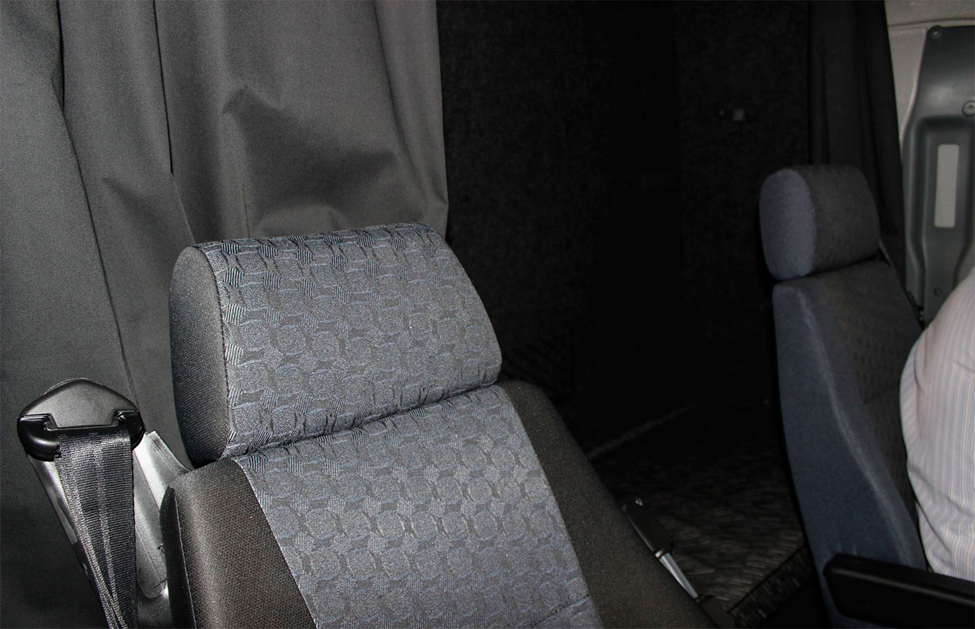Для перевозки грузов на большие расстояния кабина тягача оборудована спальным местом производства АЗ «Чайка-Сервис».