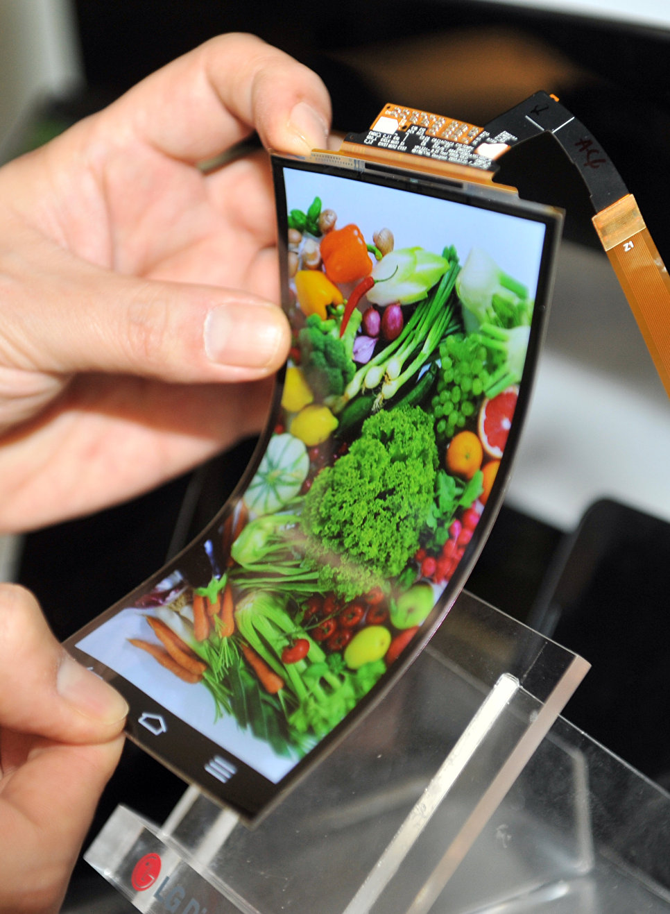 Пластиковый дисплей OLED (POLED), используемый в изогнутом экране смартфона LG Electronics «G Flex»
