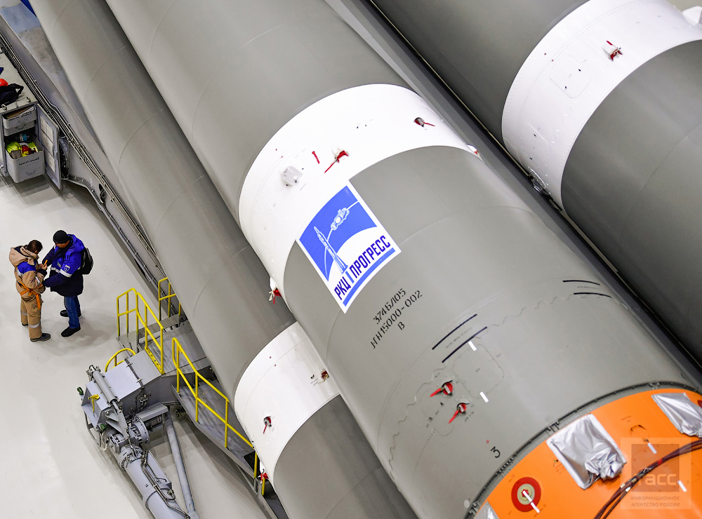 Работа с ракетой при сборке идет почти в стерильных условиях — специалисты работают как в операционной — в белых халатах. Сборкой занимались представители разработчика «Союза-2» — «ЦСКБ-Прогресс», которые доставили ракету на Восточный и контролируют условия ее хранения.